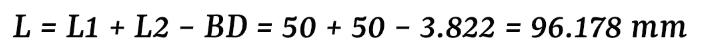 Condition: Low carbon steel, T=2mm, A=90 °, R=2mm, L1=50mm, L2=50mm, K=0.44 (initial value)