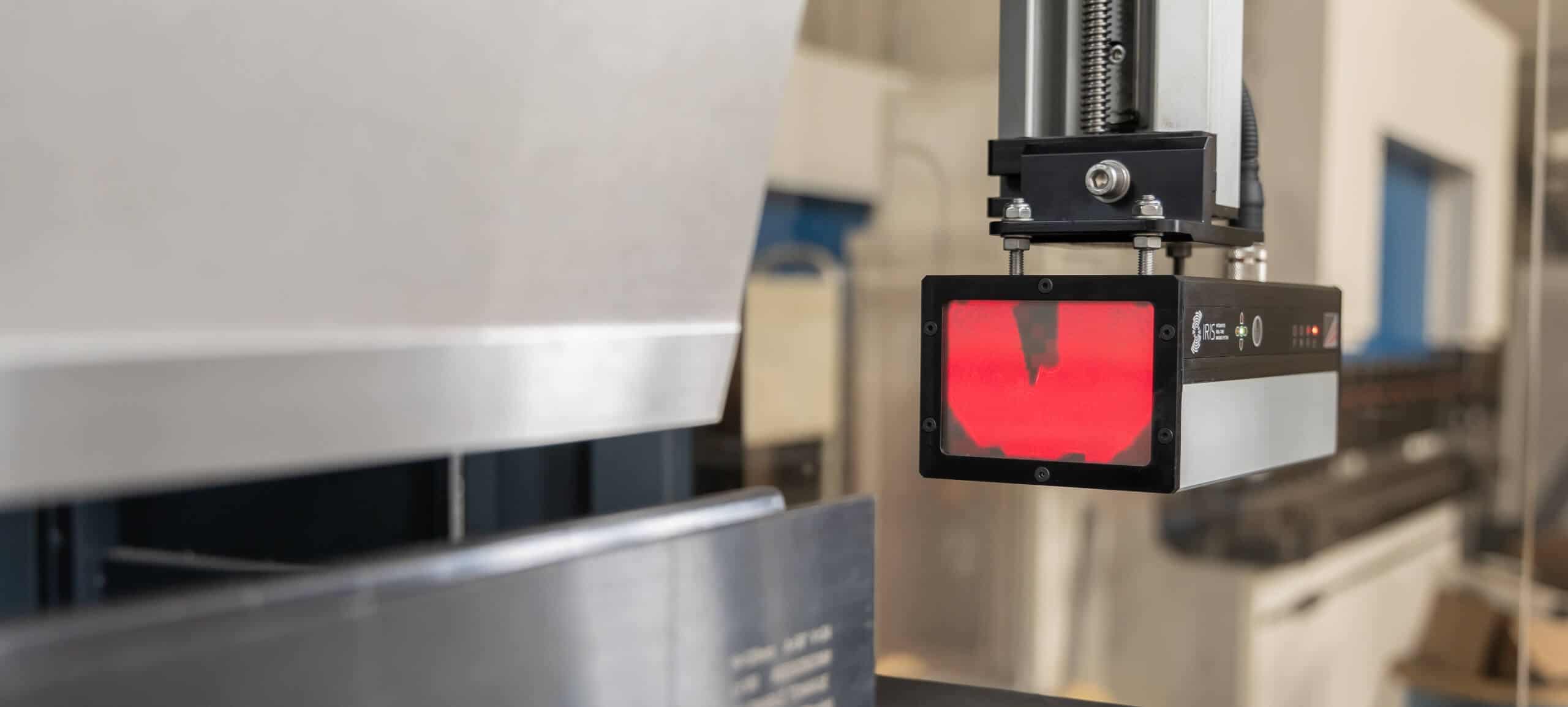 The Lazer Safe system is an optical safety solution consisting of laser transmitters and receivers at both ends of the prass brake, and connected in real time to the CNC control system, using high-precision laser scanning to cover all critical areas and synchronize with the movement of the slide and tool to form an intelligent safety barrier around the bending tool head.